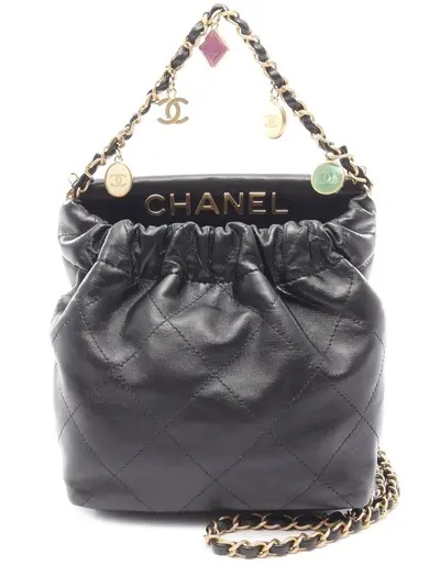 quilted lambskin leather body leather woven chain straps with charms leather woven chain link shoulder strap exterior back slip pocket fold in flap with magnetic snap closure interior zip pocket black Serial Number: P213166J This item has no inclusions. Condition: GOOD. This previously owned and used item is in good condition with minimal signs of use. This may include fading of material or plating and scratches. Due to the exclusivity of this item and its limited availability, processing and delivery might take longer than usual. Please refer to the photos on this product page for a detailed view of the item, including any damages declared.