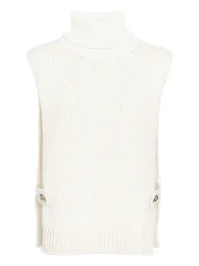 off-white roll neck sleeveless decorative button detailing ribbed knit