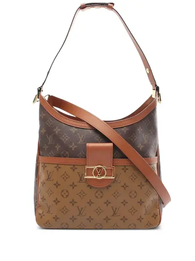 monogram reverse canvas body with leather trim flat leather strap detachable flat leather strap open top with lobster claw clasp closure exterior front pocket with magnetic closure interior zip pocket brown Serial Number: DU3290 Inclusions: shoulder strap. Condition: GOOD. This previously owned and used item is in good condition with minimal signs of use. This may include fading of material or plating and scratches. Due to the exclusivity of this item and its limited availability, processing and delivery might take longer than usual. Please refer to the photos on this product page for a detailed view of the item, including any damages declared.