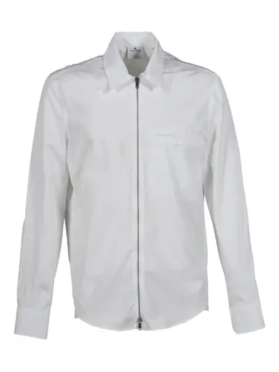 white zip fastening pointed collar single chest pocket long sleeves
