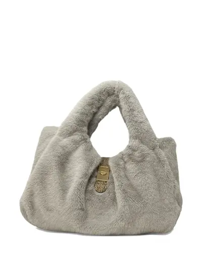 grey faux fur top handle gold-tone hardware
