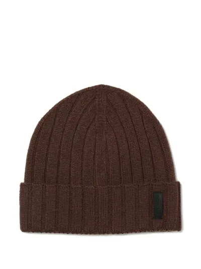 brown ribbed knit turn up brim