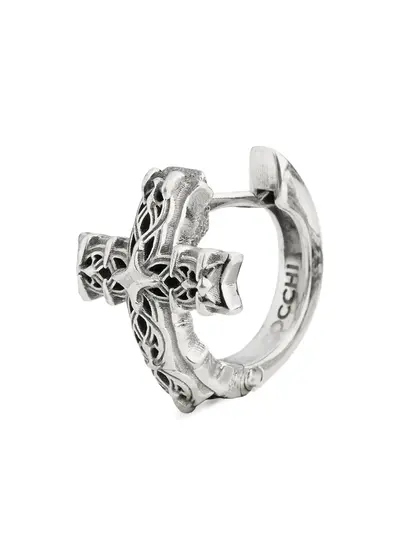silver sterling silver cross detail hoop style engraved detail for pierced ears This is a single earring