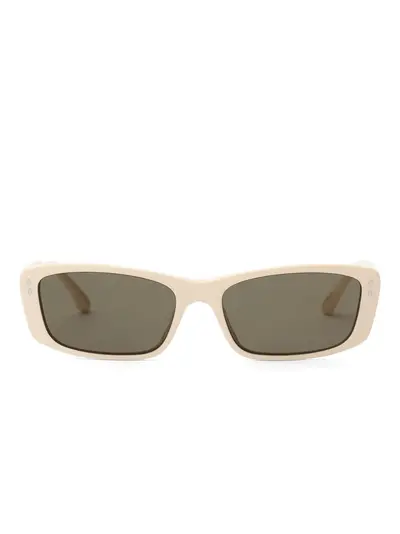 light beige rectangle frame tinted lenses logo detail These glasses come with a protective case.