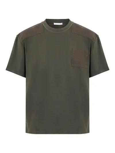 dark green cotton chest patch pocket crew neck short sleeves