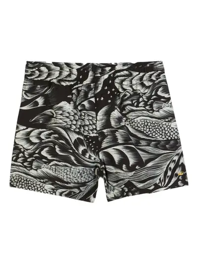 black monochrome pirarucu-print elasticated waistband side pockets small-logo detail straight hem Be mindful to try on swimwear over your own garments.