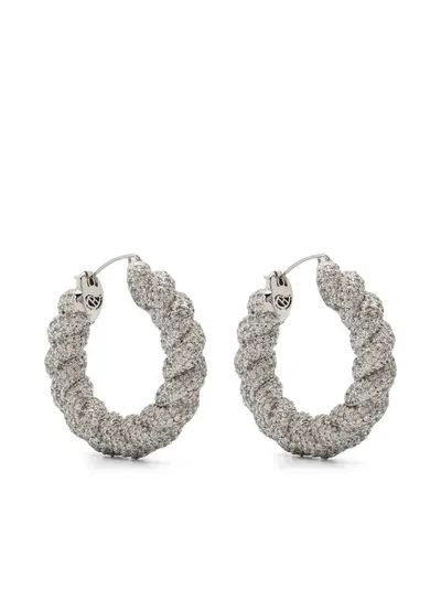 silver-tone sterling silver-plated brass crystal embellished rope design hoop style These earrings come as a pair.