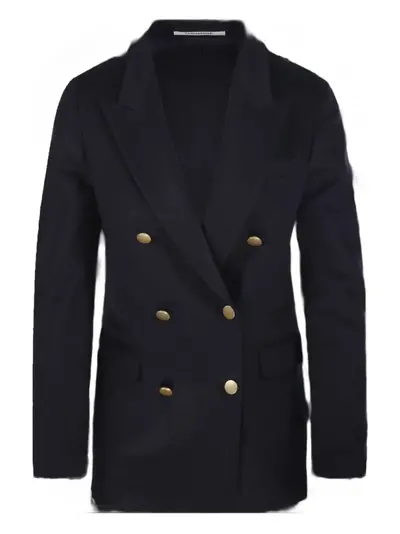 dark blue double-breasted button detail notched lapels flap pockets long sleeves