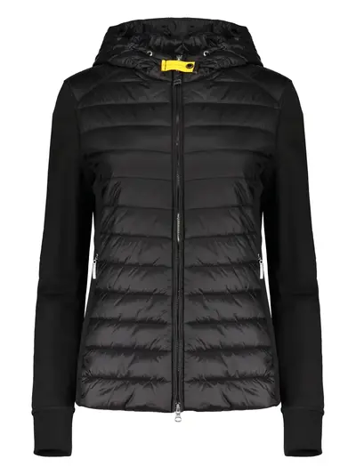 black padded design zip fastening long sleeves hooded ribbed cuffs