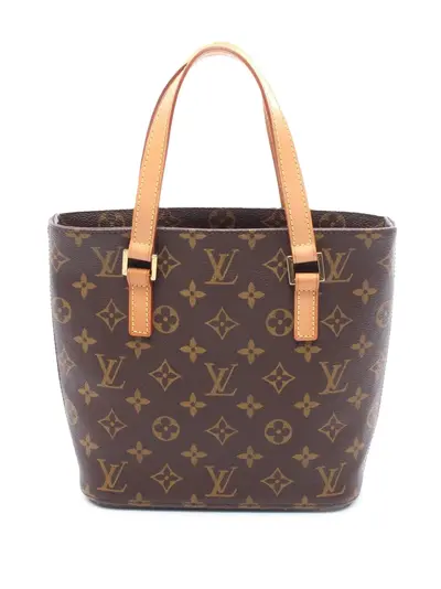 monogram canvas body flat vachetta leather straps interior compartments interior zip closure brown Serial Number: SR0031 This item has no inclusions. Condition: EXCELLENT. This previously owned item is in near-perfect condition with no signs of damage or use. Due to the exclusivity of this item and its limited availability, processing and delivery might take longer than usual. Please refer to the photos on this product page for a detailed view of the item, including any damages declared.