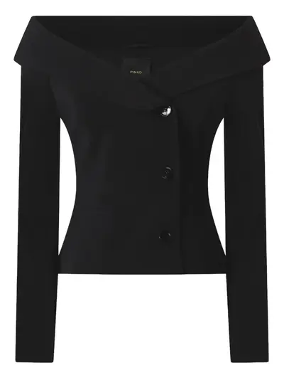 black off-shoulder neckline button fastening long sleeves fitted waist structured silhouette