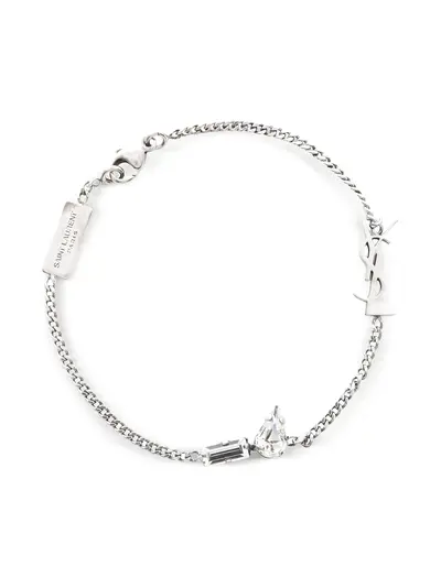 silver-tone chain-link detail Cassandre logo charm lobster clasp fastening engraved logo