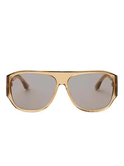 brown square frame tinted lenses acetate construction straight arms subtle branding These glasses come with a protective case.