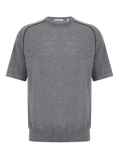 grey contrasting trim short sleeves round neck ribbed hem ribbed cuffs