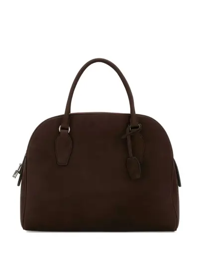 dark mocha top rolled handles top zip fastening silver-tone hardware tag detail