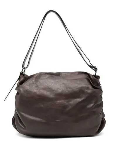chocolate brown ruched detailing adjusatble shoulder strap zip fastening internal logo plaque