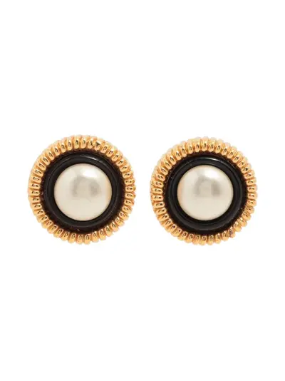 1970-1980s gold-tone round shape faux-pearl detail clip-on fastening ridged trim Condition: GOOD. This previously owned and used item is in good condition with minimal signs of use. This may include fading of material or plating and scratches. Normal everyday use and external agents may reduce the lustre of gemstones and gold surfaces. To maintain, use specific, non-abrasive products specially meant for cleaning jewellery.