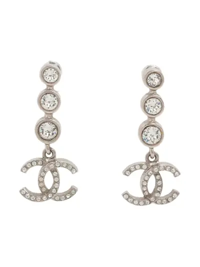 2021 silver-tone crystal embellishment post-back fastening CC logo drop design for pierced ears Condition: GOOD. This previously owned and used item is in good condition with minimal signs of use. This may include fading of material or plating and scratches. Normal everyday use and external agents may reduce the lustre of gemstones and gold surfaces. To maintain, use specific, non-abrasive products specially meant for cleaning jewellery.