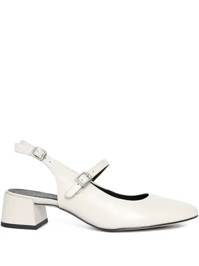 off-white slingback design buckle fastening ankle strap almond toe block heel