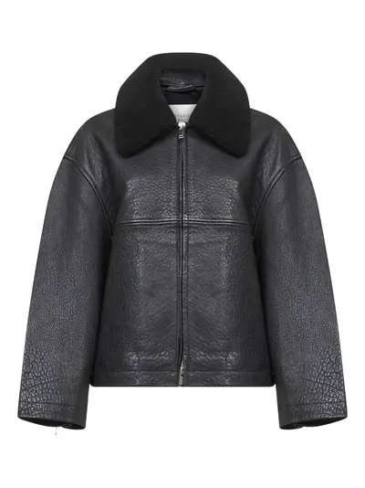 Studio Nicholson Erie shearling-collar zip-up leather coat 32260582 (lpn31003902)