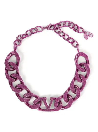 pink brass VLogo Signature crystal embellishment chain-link detailing lobster claw fastening