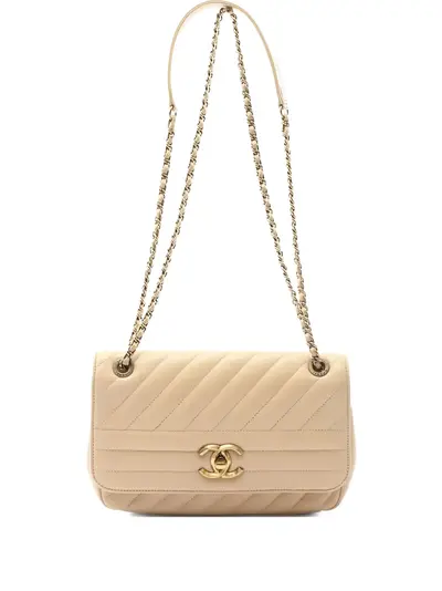 2016-2017 beige goatskin diagonal quilting chain strap gold-tone hardware flap closure