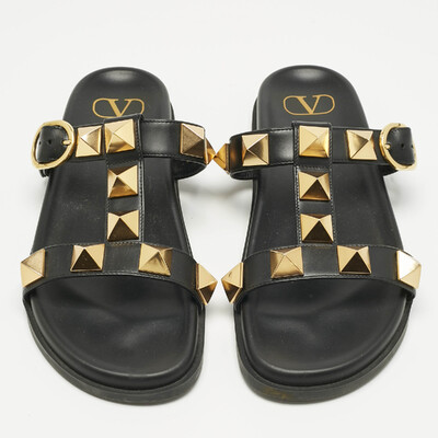 Bold studs, no heel needed. These Valentino slides prove you don’t need height to make a point. Clean lines, oversized gold accents, and an easy slip on closure, perfect for off duty days