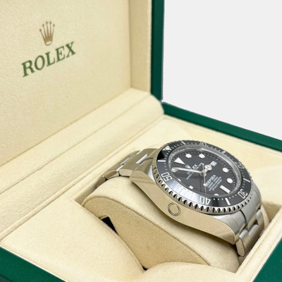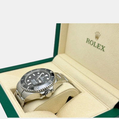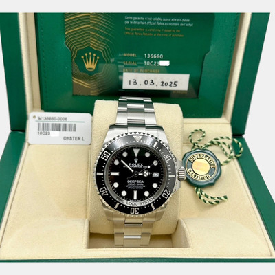 Built for deep sea exploration, the Rolex Sea Dweller Deepsea 136660 is a professional diver’s watch with a 44 mm stainless steel case and black dial. Designed for extreme pressure resistance, it includes a helium escape valve and automatic movement.
