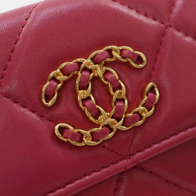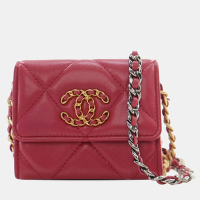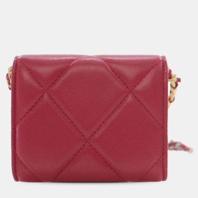 Chanel Red Quilted Lambskin Chanel 19 Card Holder On Chain 1222291 - 1