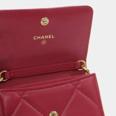 Chanel Red Quilted Lambskin Chanel 19 Card Holder On Chain 1222291 (красный, lpn31004393)