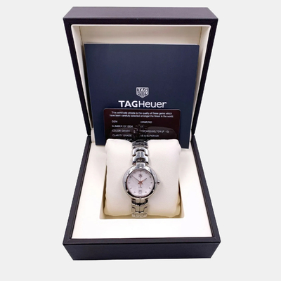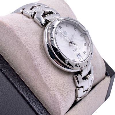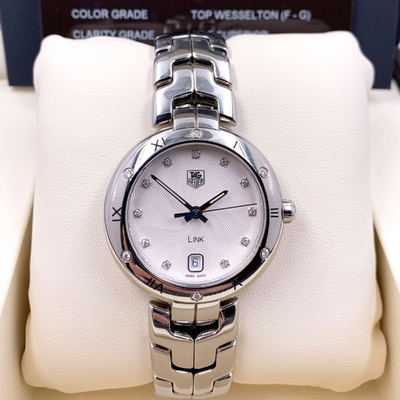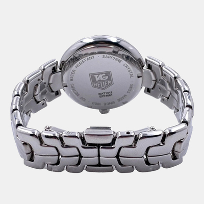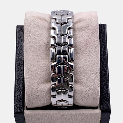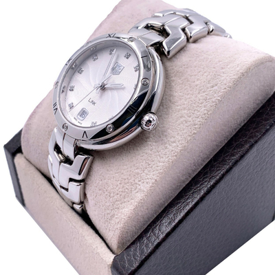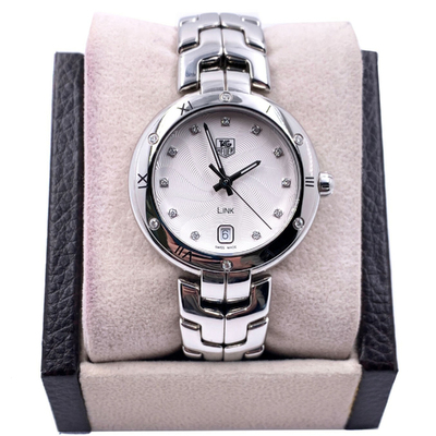Grace meets geometry in the TAG Heuer Link WAT1312, where sculpted steel and a diamond framed bezel converge around a delicately patterned dial. Subtle guilloché detailing adds a layer of texture beneath brilliant hour markers, bringing light to every glance. Feminine yet formidable, it’s an everyday watch elevated by elegance.