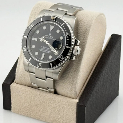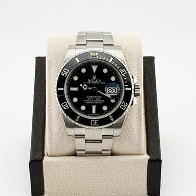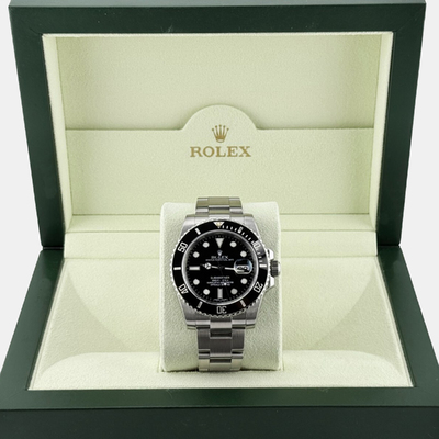 A durable and reliable timepiece, the Rolex Submariner Date 116610 features a 40mm stainless steel case and black dial. Known for its automatic movement and classic rotating bezel, this model remains a staple for everyday wear and dive use alike.