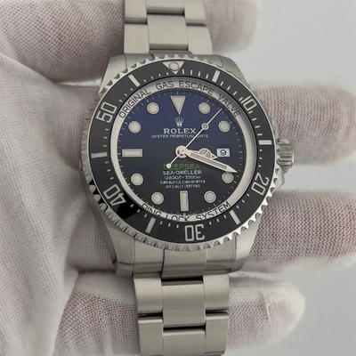 The Rolex Deepsea 126660 is a professional grade dive watch with a 44mm stainless steel case and black dial. Engineered with the Ringlock system for high pressure resistance and water resistance up to 3,900 meters. Reliable for both sea and land.