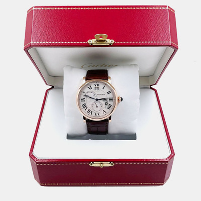 This authentic Cartier Rotonde De Cartier W1556240 3771 Automatic Silvered Guilloche 18K Rose Gold Mens Wristwatch 42 mm is a sophisticated pre owned designer timepiece that epitomizes Cartier’s mastery of fine watchmaking. Featuring a 42 mm 18K rose gold case with a silvered guilloché dial, it exudes refined elegance and timeless style. Offered as a pre loved luxury watch, it reflects authentic Cartier craftsmanship, making it an exceptional choice for collectors or anyone seeking a distinguished statement wristwatch.