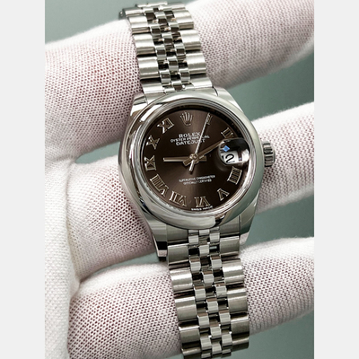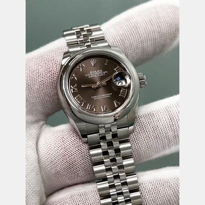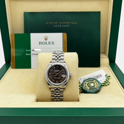 Delicate in form, powerful in expression—the Rolex Datejust 279160 distills elegance into its purest form. With a rich dark grey dial and compact 28mm case, it evokes a subtle strength, suited for the modern woman who embraces classic design with a contemporary spirit. Stainless steel brings durability; the silhouette, timeless appeal. It is grace, defined.