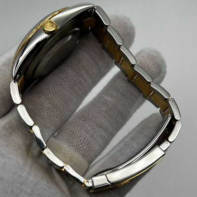 Warm, radiant, and unmistakably Rolex, the Datejust 126333 in champagne and yellow gold speaks a language of refined tradition. Its 41mm silhouette commands attention without excess, balancing golden warmth with the steely confidence of modern design. This is a watch that honors heritage while moving decisively forward—an emblem of success in every tick.