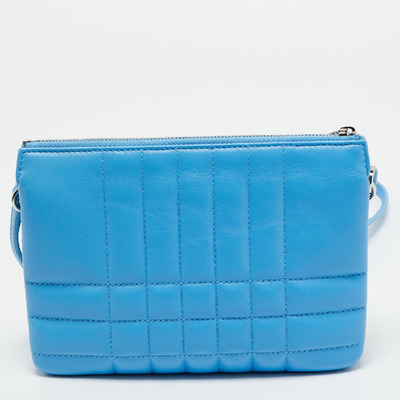 Burberry Blue Exploded Check Quilt Leather Lola Double Pouch Crossbody Bag 1221433 - 1