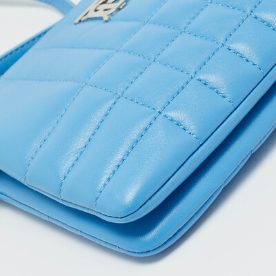Burberry scales up its signature check in quilted blue leather for the Lola double pouch crossbody. Dual compartments keep things organised while the chain strap adds polish. A statement accessory that refreshes everyday outfits with British flair.