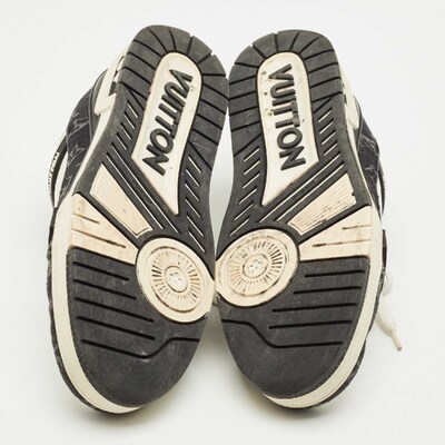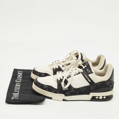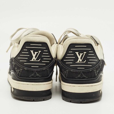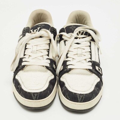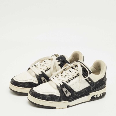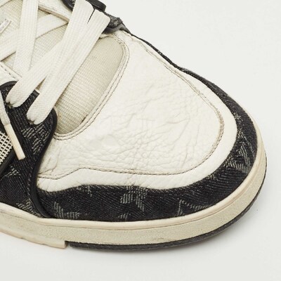 Louis Vuitton White/Black Denim and Leather LV Trainer Maxi Lace Up Sneakers Size 42 1222396 (белый, lpn31004518)