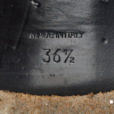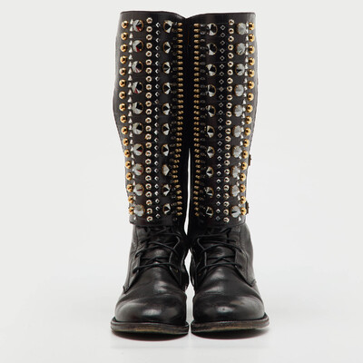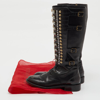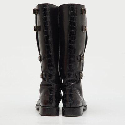 Croc texture meets a mix of embellishments and buckles in these pre owned René Caovilla boots. The knee length silhouette blends daring sparkle with structured fit, perfect under midi skirts or mini hemlines.
