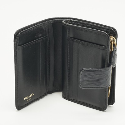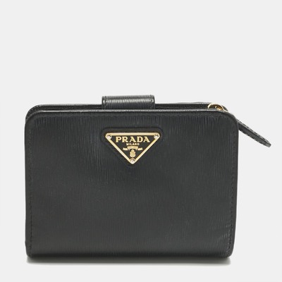 Prada Black Vitello Move Leather French Compact Wallet 1222250 - 1