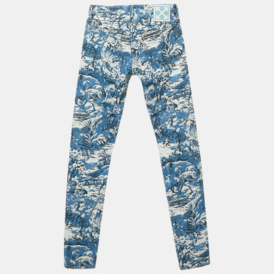 Off-White Blue Printed Denim Tapestry Skinny Jeans S Waist 26" 1222199 (голубой, lpn31004583)
