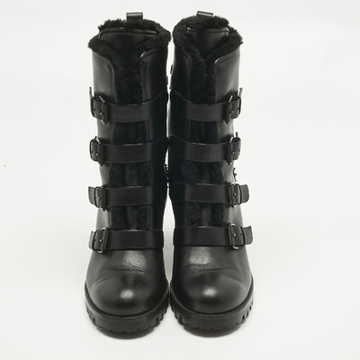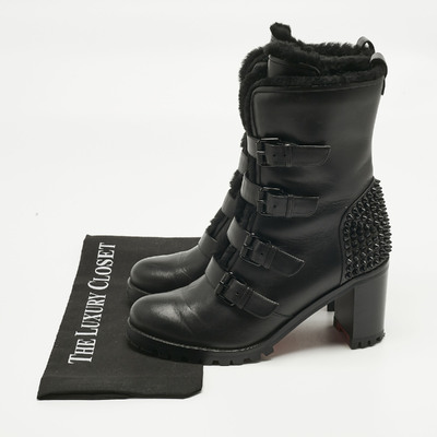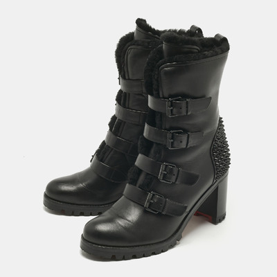 Christian Louboutin Black Leather and Shearing Spike Accents Combat Boots Size 39 1222194 - 1