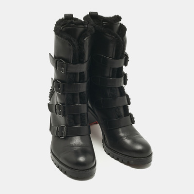 Christian Louboutin Black Leather and Shearing Spike Accents Combat Boots Size 39 1222194 (чёрный, lpn31004585)