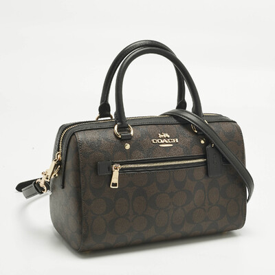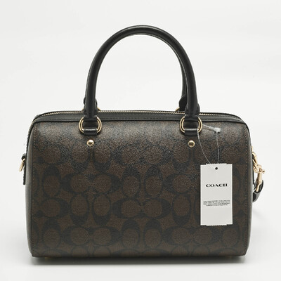 Coach Brown/Black Signature Coated Canvas and Leather Rowan Satchel 1222132 (коричневый, lpn31004623)