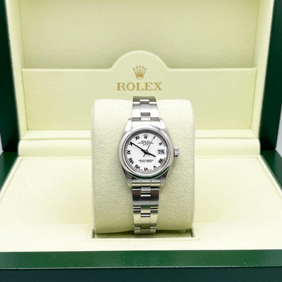 The Rolex Date 79160 presents a pristine white dial set in a compact 26mm stainless steel case. Its elegant, minimalist design is perfect for everyday luxury, combining subtle sophistication with Rolex’s renowned precision and craftsmanship.