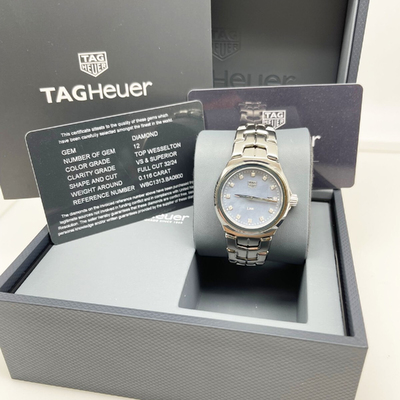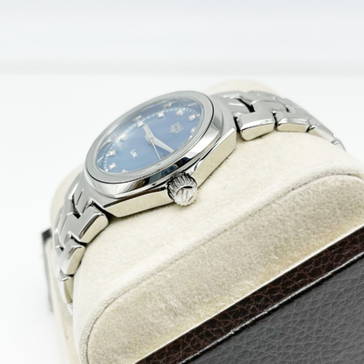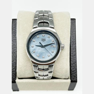 Oceanic beauty meets modern design in this Tag Heuer Link, showcasing a dazzling blue mother of pearl dial accented with diamond hour markers. The polished stainless steel bracelet and precise quartz movement create an elegant, versatile timepiece for every occasion.