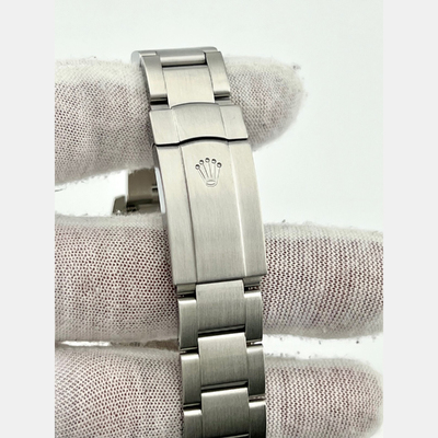 This Oyster Perpetual embodies minimalist luxury, featuring a radiant silver dial within a balanced 36 mm stainless steel case. Engineered with Rolex’s self winding movement, it delivers a harmonious blend of precision, durability, and understated elegance.