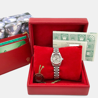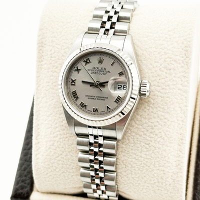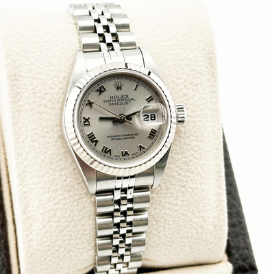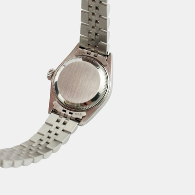 Graceful and understated, this Datejust pairs polished stainless steel with a luminous 18k white gold bezel for a subtle touch of luxury. Its silver dial reflects soft light with elegant clarity, while Rolex’s trusted automatic movement delivers performance as remarkable as its design.