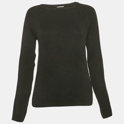 Crafted with Moncler’s signature sophistication, this black rib knit sweater offers warmth in a sleek crew neck style. The fitted design ensures a flattering shape, perfect for layering under jackets or pairing with denim.